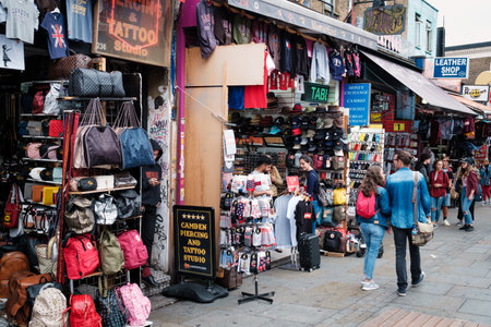 LONDON, UK - AUGUST 20, 2015: Camden Town Market, famous alternative culture shops. Mainly tourist oriented, selling souvenirs, crafts and fashion products