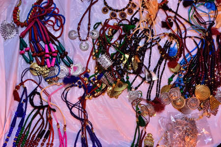 Silver jewelry for sale on a street in Medina of Chefchaouen, Morocco