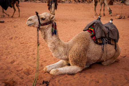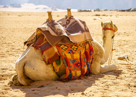 Bedouin camel in wadi Rum Desert, Jordan, Middle East