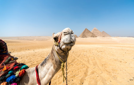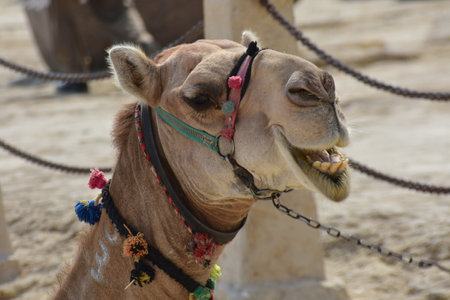 Close up of a head of a camel, at the Giza Plateau, Cairo, Egypt.