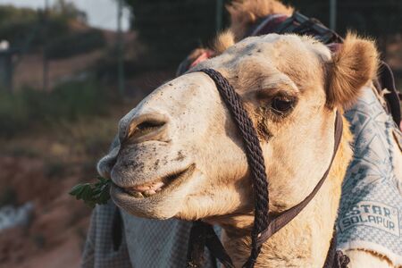 Close-up of a desert dromedary camel eating