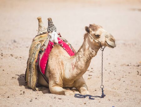 camel sitting on the sand. camel ride in the desert