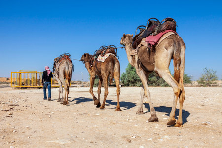 The drover withdraws camels from the aviary. Camel riding.