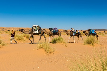 Caravan of camel in the sahara desert of Morocco