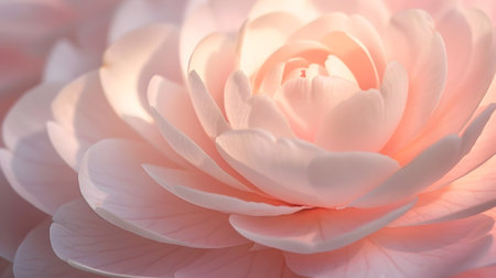 Ethereal Blush Captivating Close Up of a Soft Layered Camellia Bloom in Gentle Sunlight The delicate velvety petals create a harmonious romantic composition