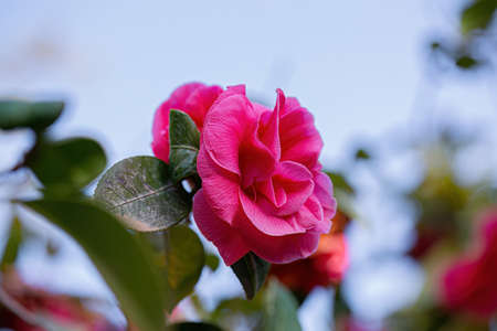 Japanese Camellia flowers, Camelia Japonica in the springtime garden with nice bokeh background