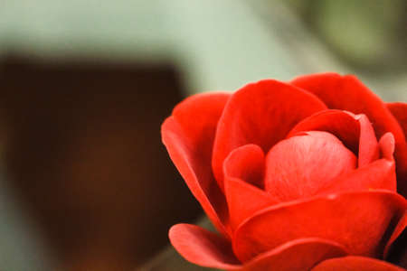 Architectural design in floral style. Interior decor with red rose buds flower in full bloom. Blurred effect. Close-up