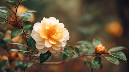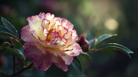 Delicate Camellia Blossom with Dewdrops in Soft Natural Light