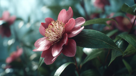 Exquisite Pink Camellia Blossom, Radiant in Soft, Gentle Light