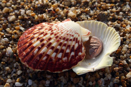 cockleshell and pearls on the beach