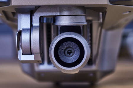 drone copter flying with digital camera in outdoor.