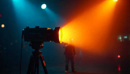Vintage spotlight casting a warm glow onto a blurred figure