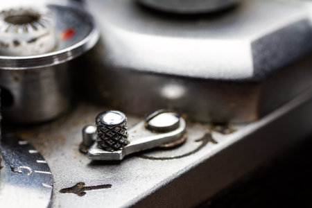 Close up of detail of old analog camera - selective focus