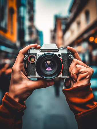 hand holding camera, world photographer day concept, generative ai