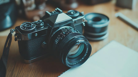 A close-up of a vintage camera with a blurred background, capturing the nostalgic and classic feel of traditional photography.