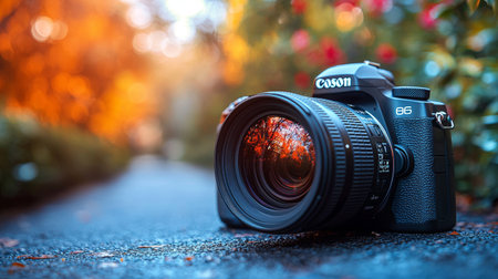 Digital camera Canon EOS on the road.