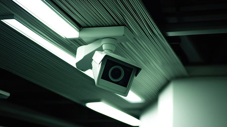 Surveillance system featuring multiple cctv cameras in a modern indoor facility. the cameras are focused and ready for monitoring, emphasizing high security and safety measures in place. ideal for illustrating security concepts in various settings. Generative AI