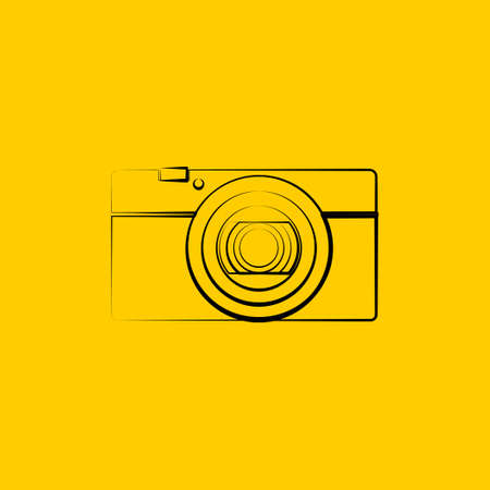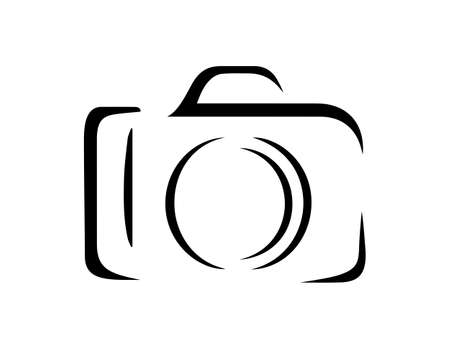 Vector cartoon illustration of camera icon. Line art design for web, site, advertising, banner, poster, board and print.