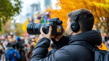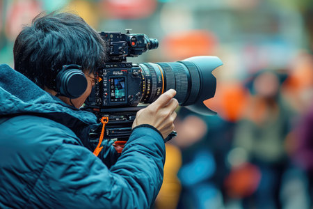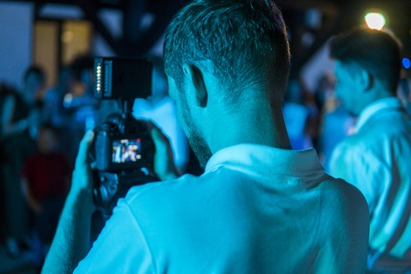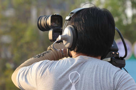 professional cameraman - covering an event to a live and record video at outdoor