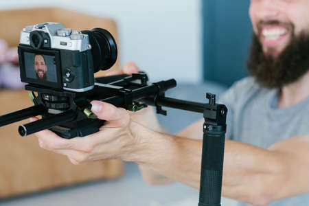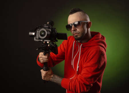 Video Making with the stabilizer. Man recording a video with a slr camcoder.