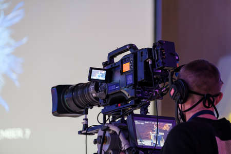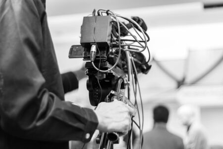 Live streaming. Camera at a press conference.