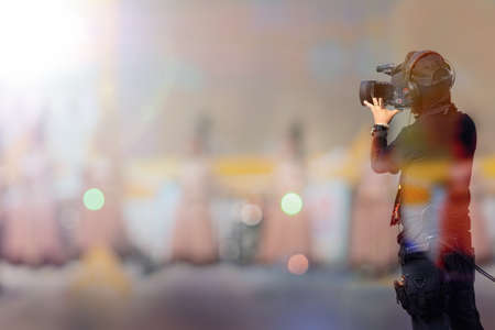 professional cameraman on stage to record event with camera equipment for entertainment and media