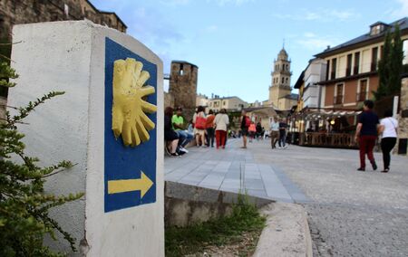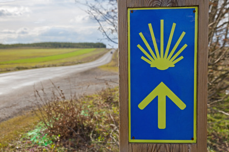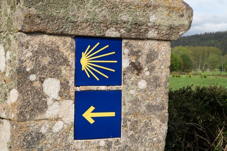 A sign showing the direction of the Camino de Santiago in Spain
