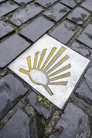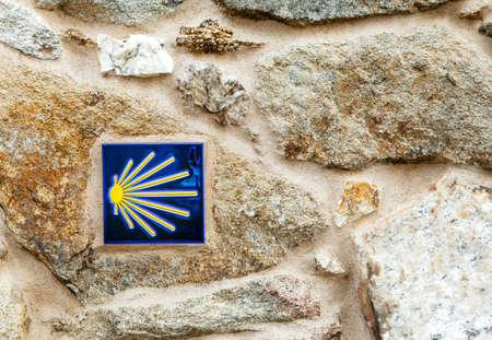 Sign with the symbol of the Camino de Santiago pilgrimage path in Galicia