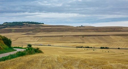 Green landscapes of Castilla, Spain in spring, pilgrims' passage area at the entrance to the city of Burgos.