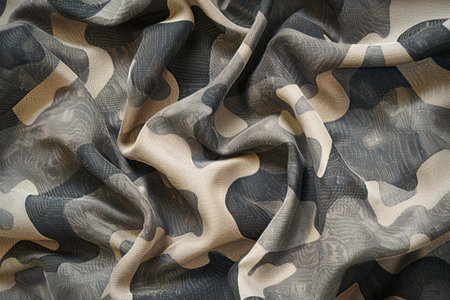 Detailed view of fabric with camo pattern in muted shades for stealthy applications, A camouflage print in muted shades for a stealthy look