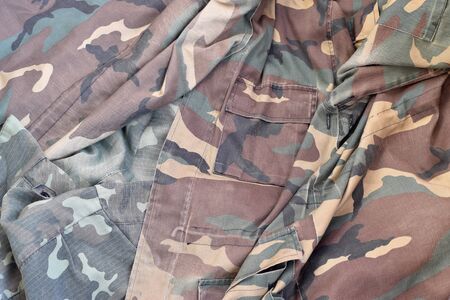 Camouflage military uniform texture background, close-up image.