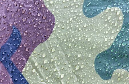 Raindrops on khaki color tent as abstract background .