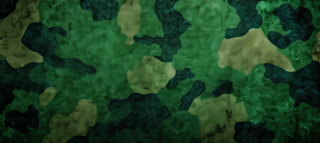 Camouflage Design Textile Background Featuring Worn Military Pattern in Earthy Tones and Texture