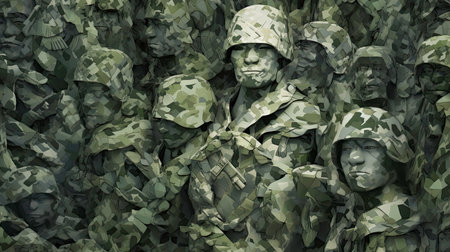 A squad of soldiers wearing advanced camouflage suits blending into their surroundings AI generated