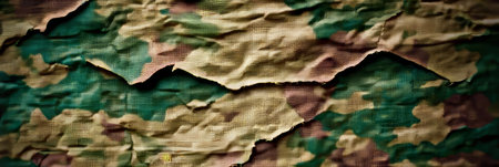 Camouflage Design Textile Background Featuring Worn Military Pattern in Earthy Tones and Texture
