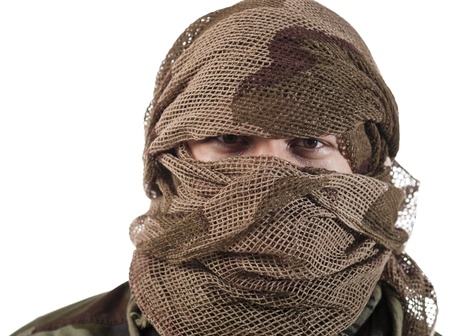 Look of a man in a camouflage mask