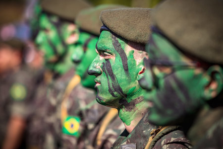 Rio de Janeiro, Brazil - september 07, 2018: military civic parade celebrating the independence of Brazil. Soldier with painted face.