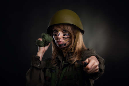 Close-up of female soldier in the battlefield