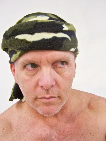 man with camouflage bandana