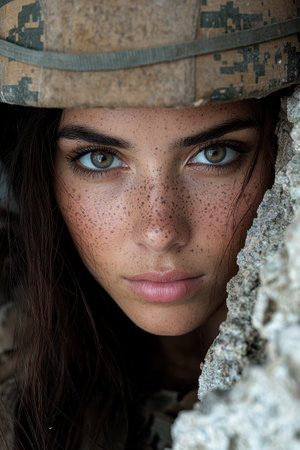 portrait of beautiful woman soldiers in military attire on black background. sadness and despair