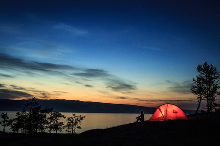 Camping tent around the mountains with stars, Altai, Russian Federation