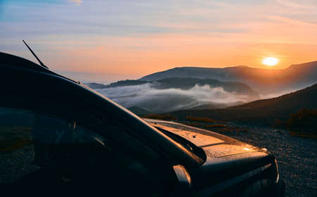 Off Road Adventure at Sunrise and Beautiful Clouds over the Montains