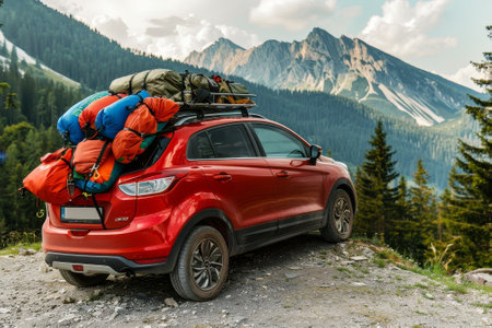 A compact hatchback loaded with camping gear. The car's versatile design and fuel efficiency make it a popular choice for outdoor enthusiasts
