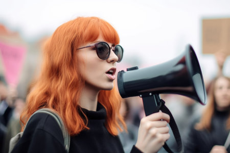 cropped shot of a young woman holding a megaphone during a protest outside, created with generative ai