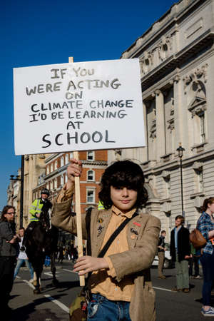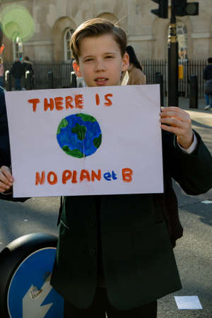 London, UK, United Kingdom 15th February 2019:- Striking school aged children in central London over climate change holding a placard