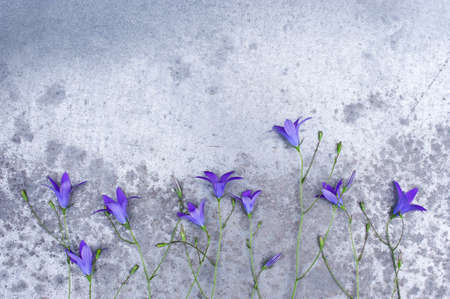 Abstract background with of flowers - Harebells (Campanulas). Summer wildflowers - Campanula. Wild blue flowers.