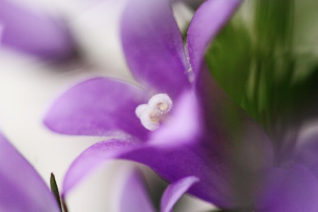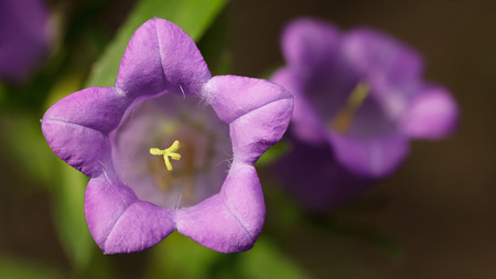Macro top view of violet flower Canterbury bells (Campanula medium)
