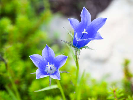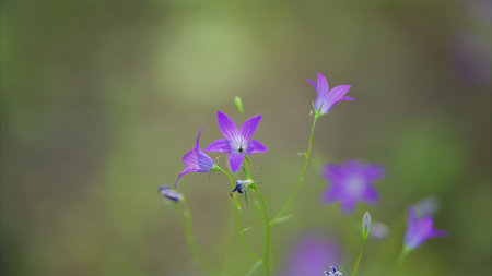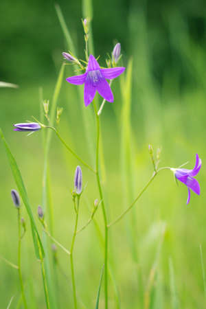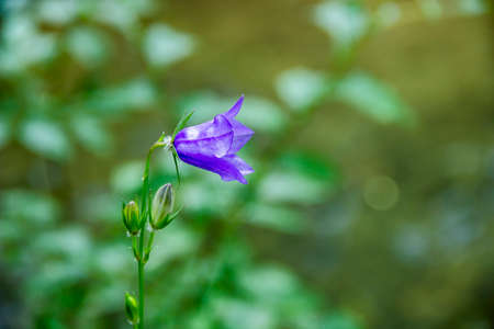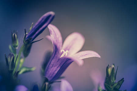 Campanula, bellflower patula, flowers. Summer floral concept. Copy space selective focus