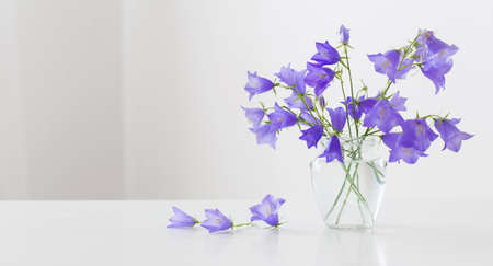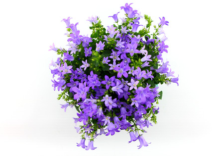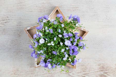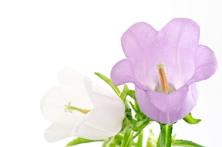 White and purple bell flower. Beautiful spring background with campanula bouquet.