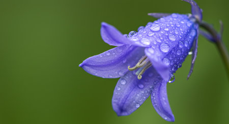 Close-up of purple bellflowers (Campanula rotundifolia) after rain.